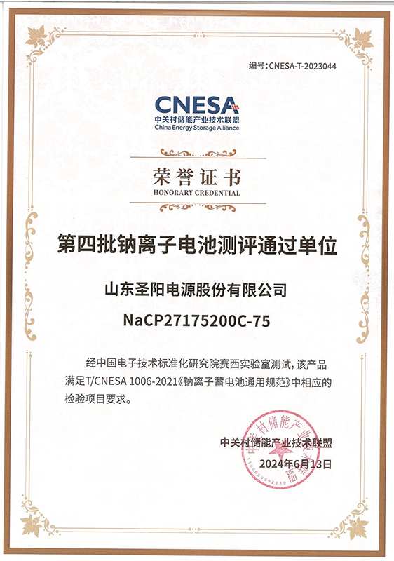 济宁圣阳股份荣登“全国第四批钠离子电池测评通过单位”榜单